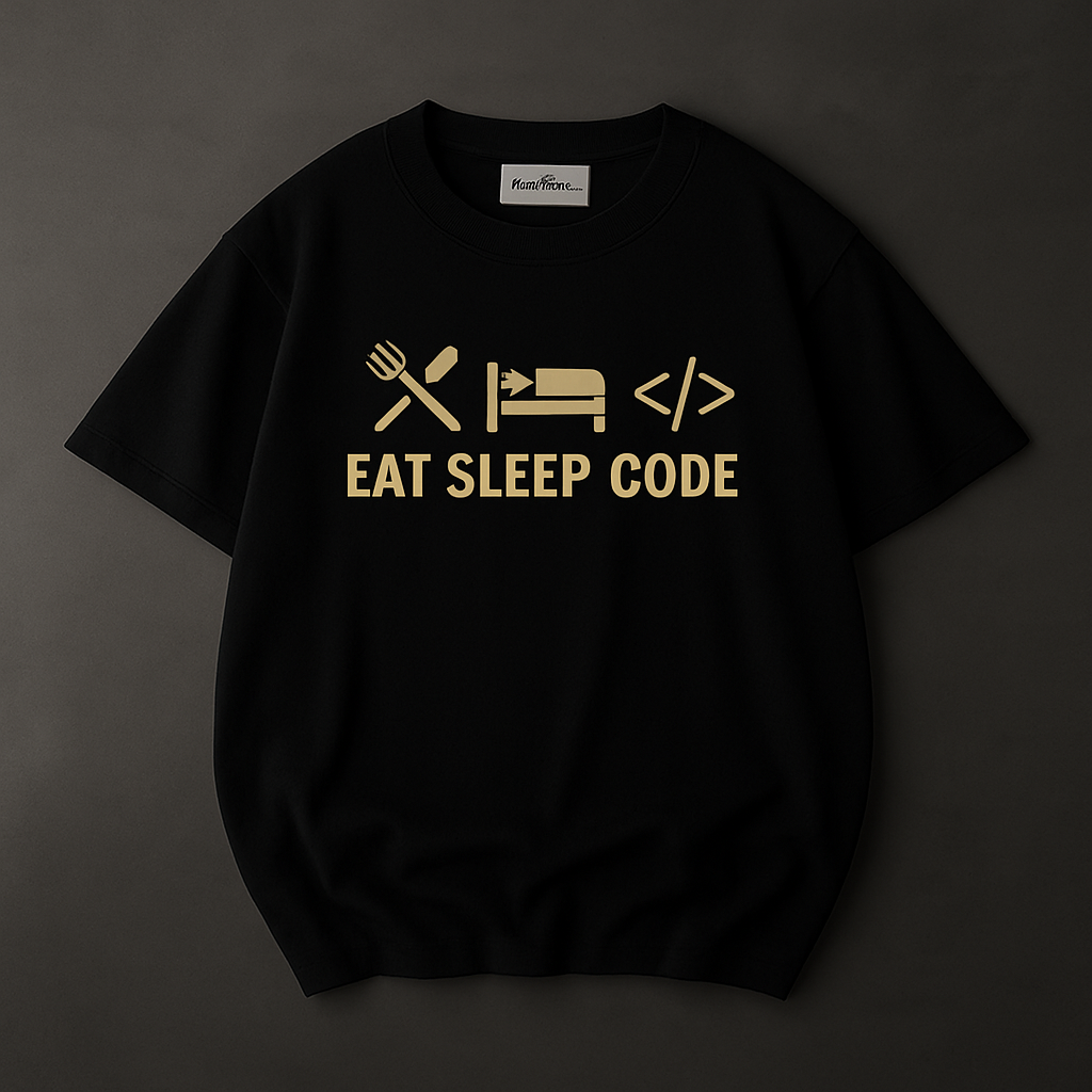 A must-have for every coder’s wardrobe. The "Eat Sleep Code" oversized t-shirt blends clean design with dev-life culture. Crafted in premium black cotton and printed using high-definition DTF technology, this tee delivers unbeatable comfort with bold clarity. Whether you're hacking through the night or debugging your way to glory, wear your routine with pride.
